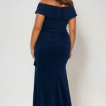 Details: The Bianca Gown is crafted from a stretch crepe fabric and features a side neckline with short sleeves and mermaid style skirt. Dress is fully lined with back zipper. Size is true to size.