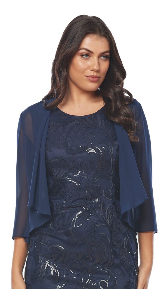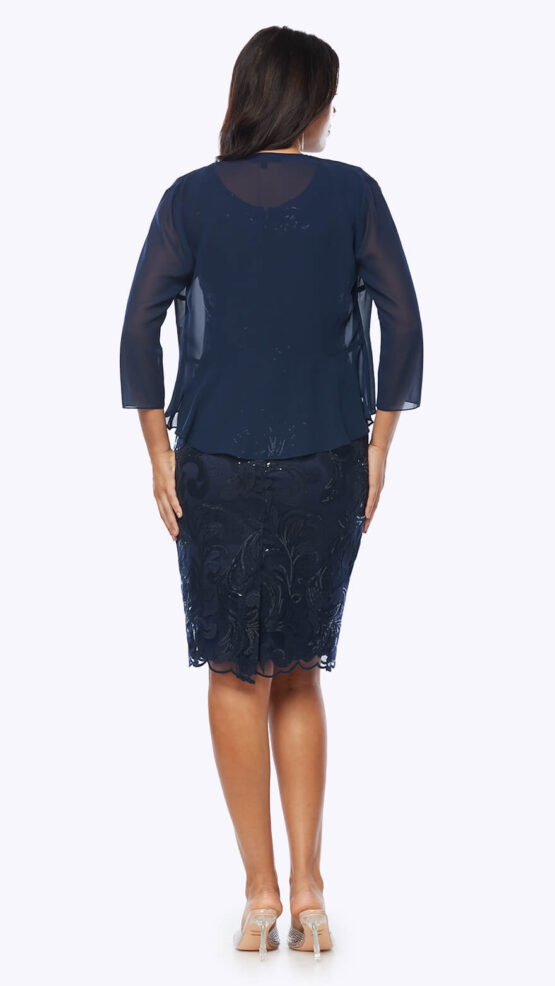 Jesse Harper Midnight Embroidered Sequin Lace Dress with Chiffon Jacket JH0533