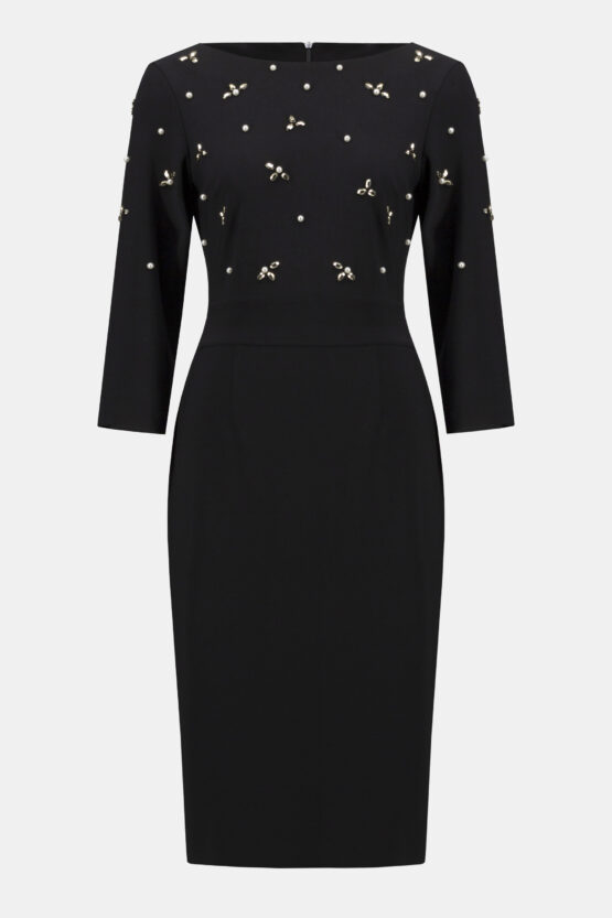 Joseph Ribkoff Black Silky Knit Embellished Sheath Dress 254007