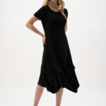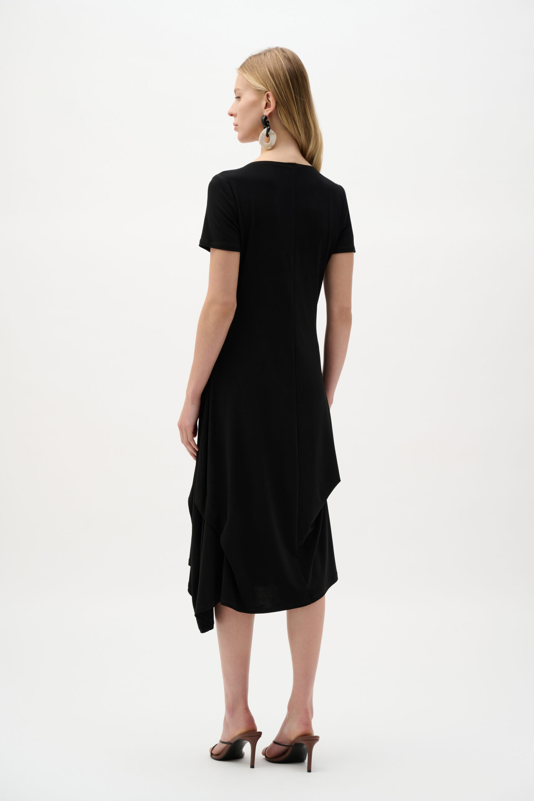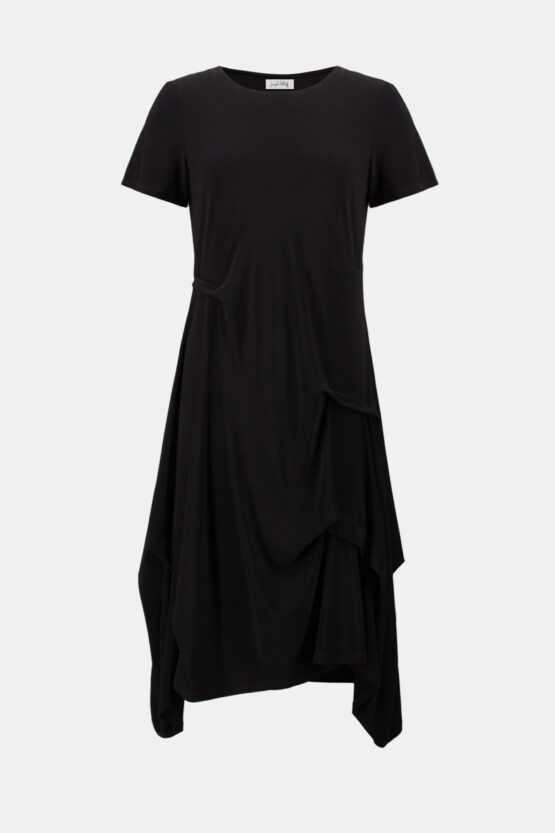 Joseph Ribkoff Black Silky Knit Trapeze Dress With Boat Neck 262032