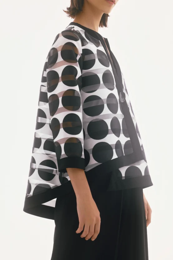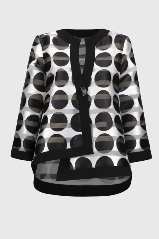 Joseph Ribkoff Signature Black/Vanilla Shadow Stripe Dot Print Swing Jacket 251772