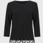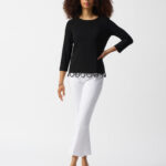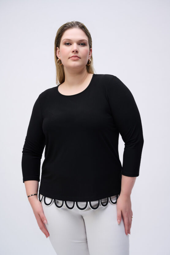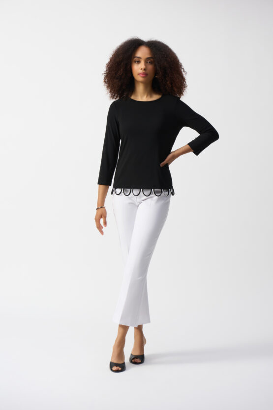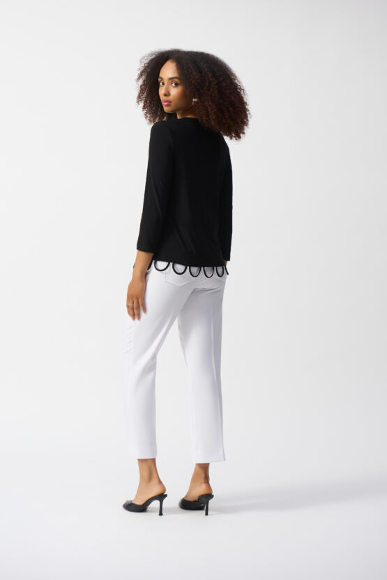 Joseph Ribkoff Black/Vanilla Silky Knit Loop Detail Fitted Top 251133