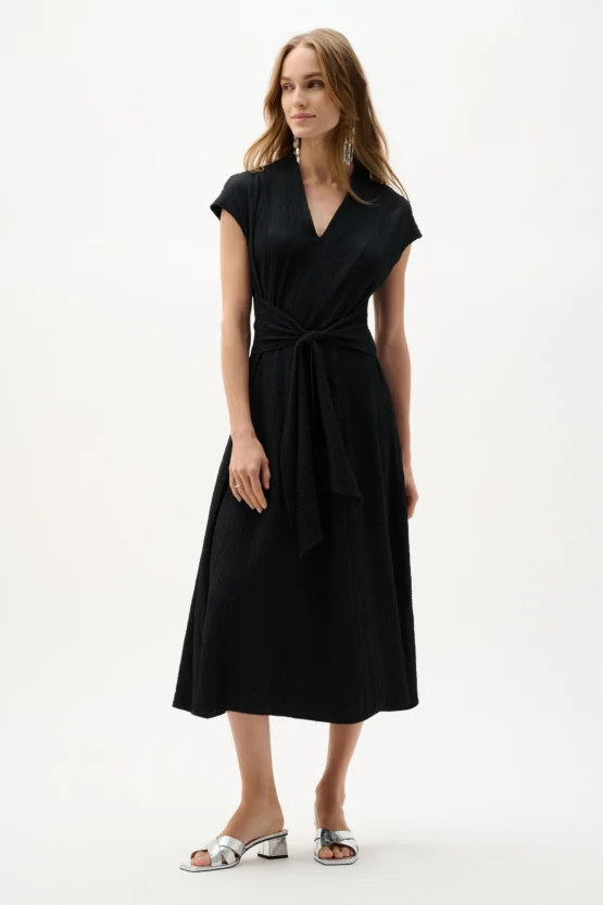 Joseph Ribkoff Black Woven Seersucker Fit And Flare Dress 262026