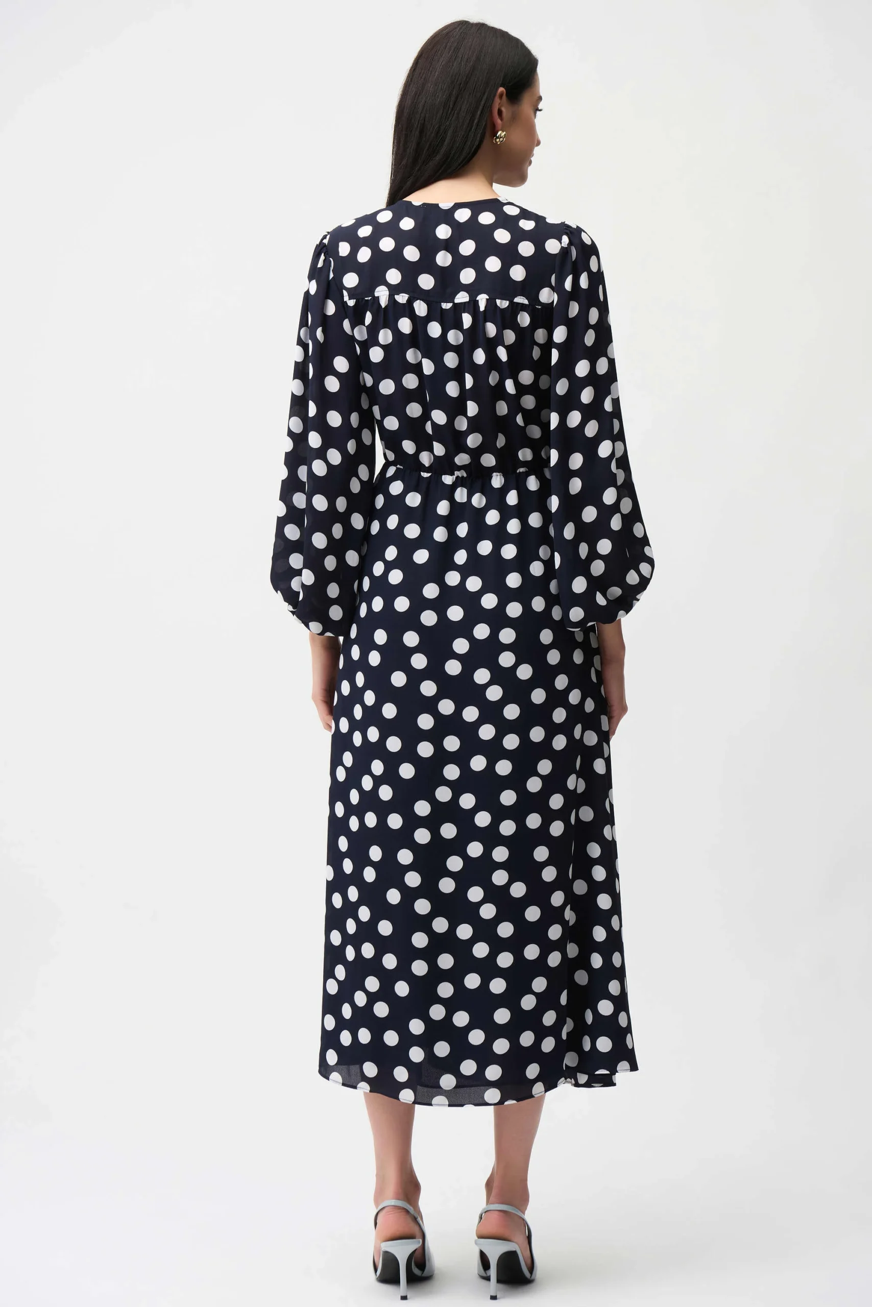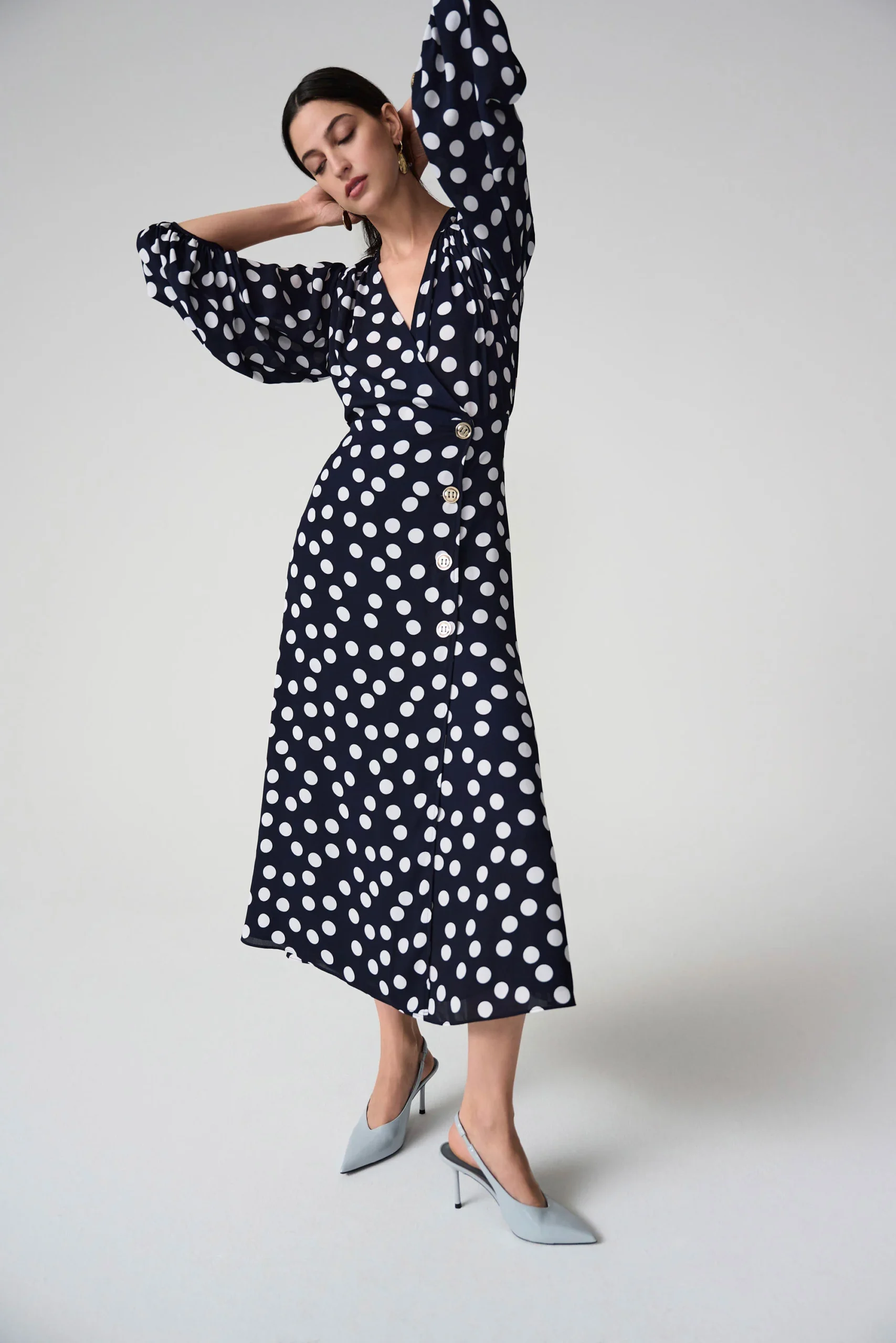 Joseph Ribkoff Georgette Dot Print Wrap Dress With Puff Sleeves 261901