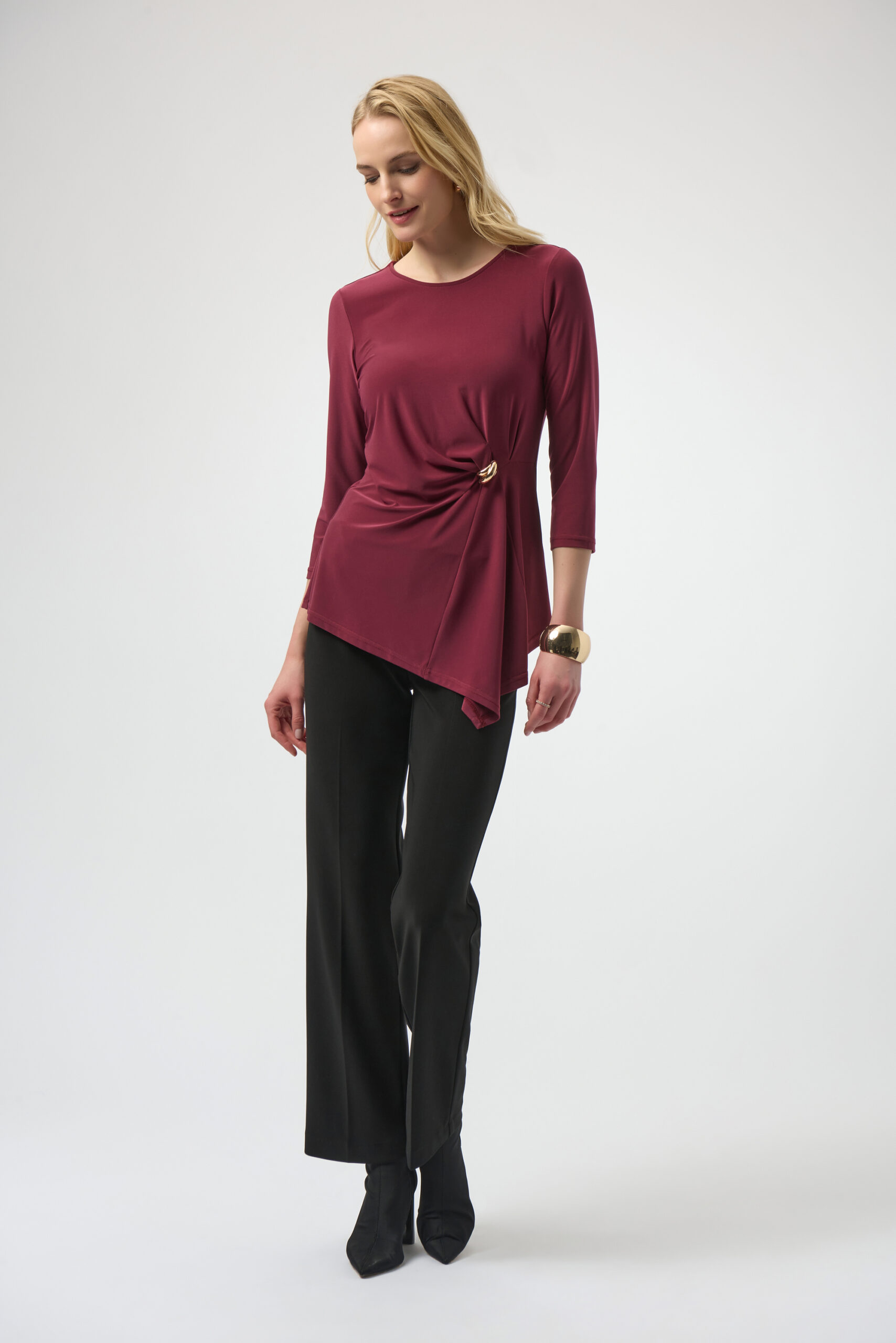 Joseph Ribkoff Merlot Silky Knit Asymmetrical Top 254132