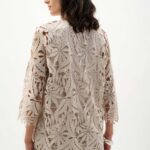 Guipure lace floats effortlessly in an open-front cover-up, its straight silhouette softened by long sleeves. Detailed lacework creates a light, refined texture that offers subtle coverage while keeping the look polished and timeless.