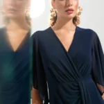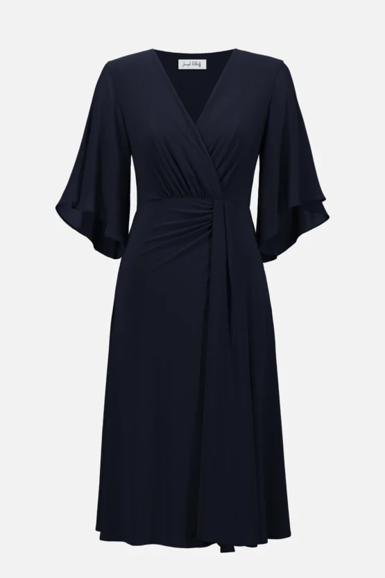 Joseph Ribkoff Signature | Midnight Blue Silky Knit Fit and Flare Dress With Chiffon Draped Sash 261710