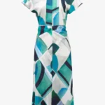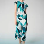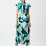 Joseph Ribkoff Textured Satin Geometric Print Fit and Flare Dress 261251
