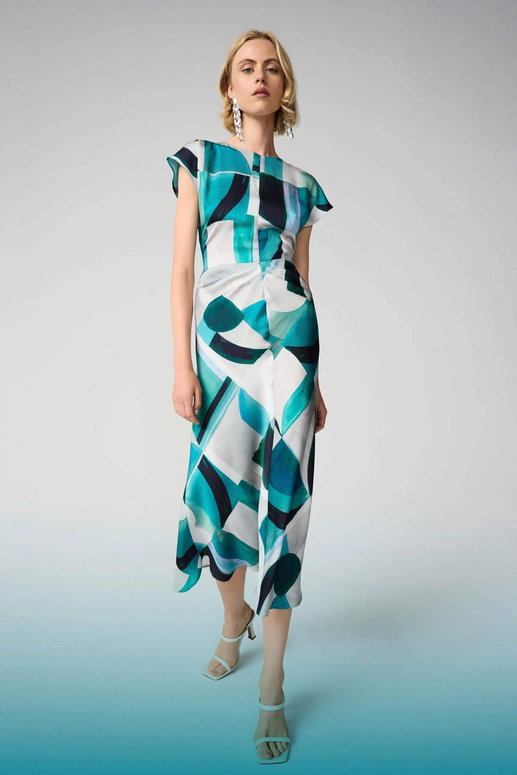 Joseph Ribkoff Textured Satin Geometric Print Fit and Flare Dress 261251