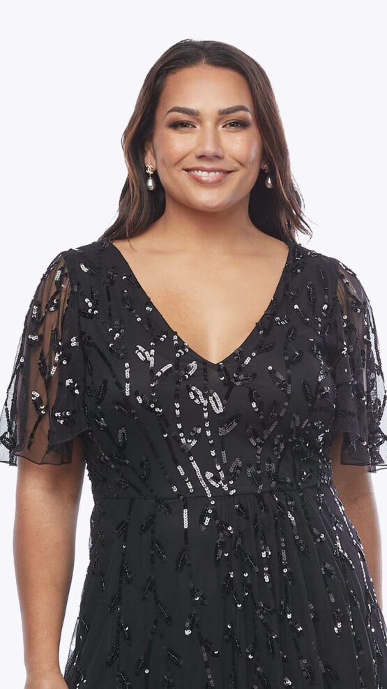 Layla Jones Black Long Mesh Beaded Dress LJ0606