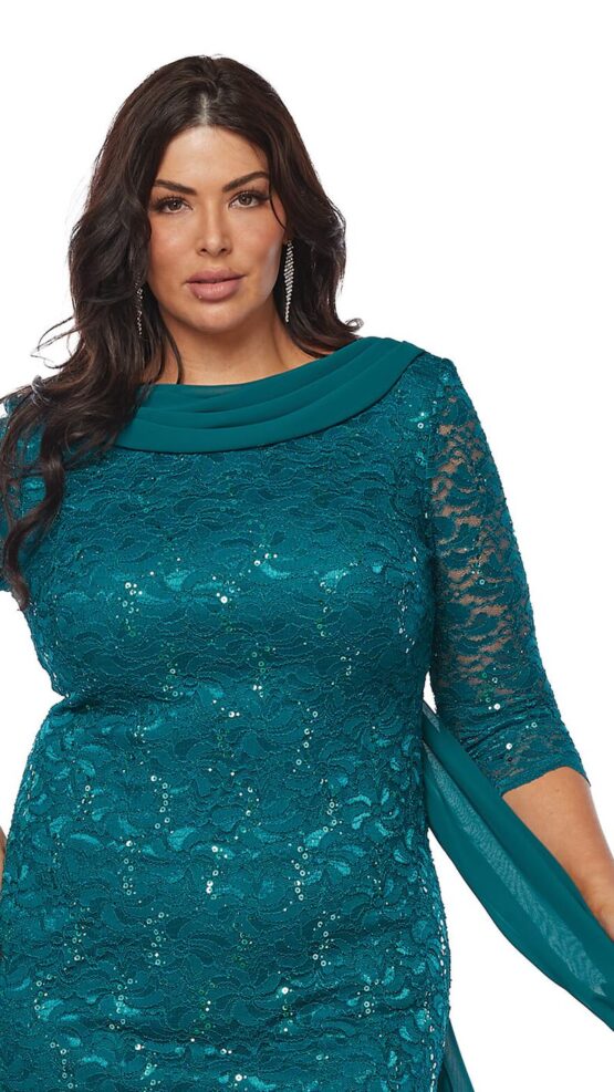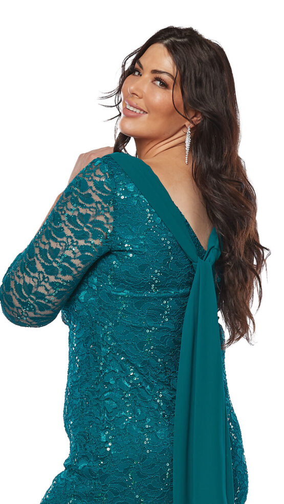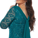 Layla Jones Emerald Stretch Sequin Short Dress with Chiffon Draped Cowl LJ0528