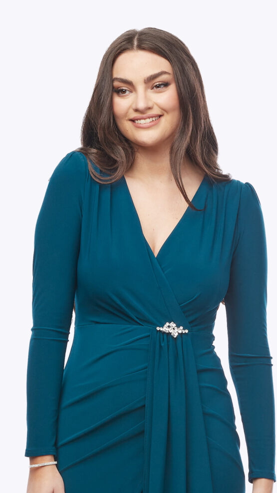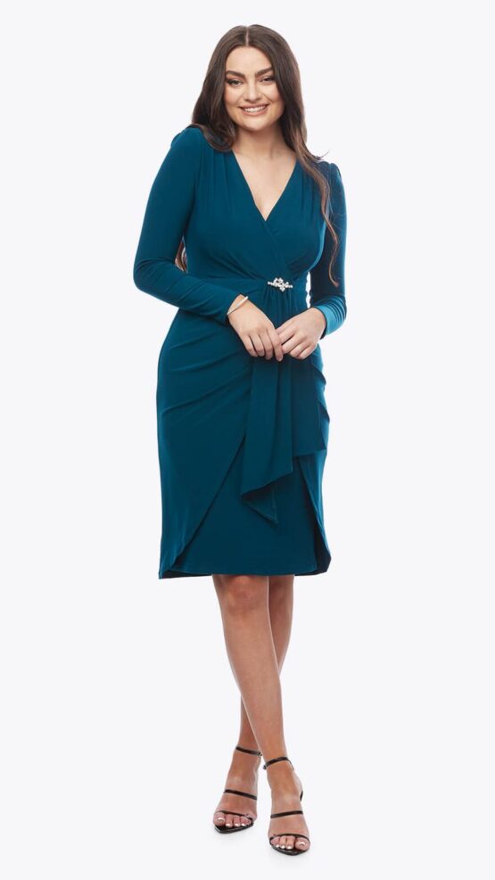 Zaliea Petrol Short Stretch Jersey Dress with Jewel Trim Z0399